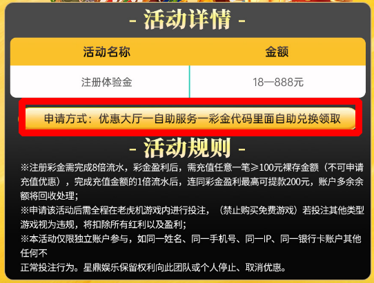 注册送自己看活动规则~其他优惠,自助申请,充值的时候选择相应的优惠!充值成功自动到账!